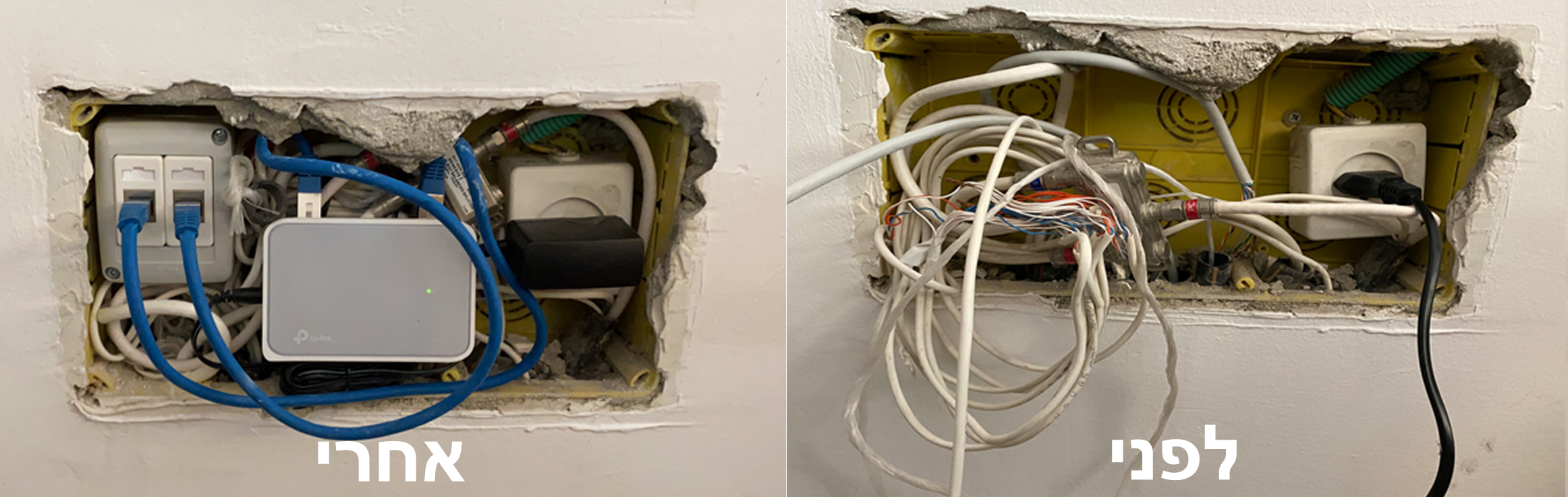 החלפת החיבור לראוטר מ wifi לחיבור קווי באמצעות התקנת נקודות תקשורת בחדרים או בכל מיקום אחר בבית.